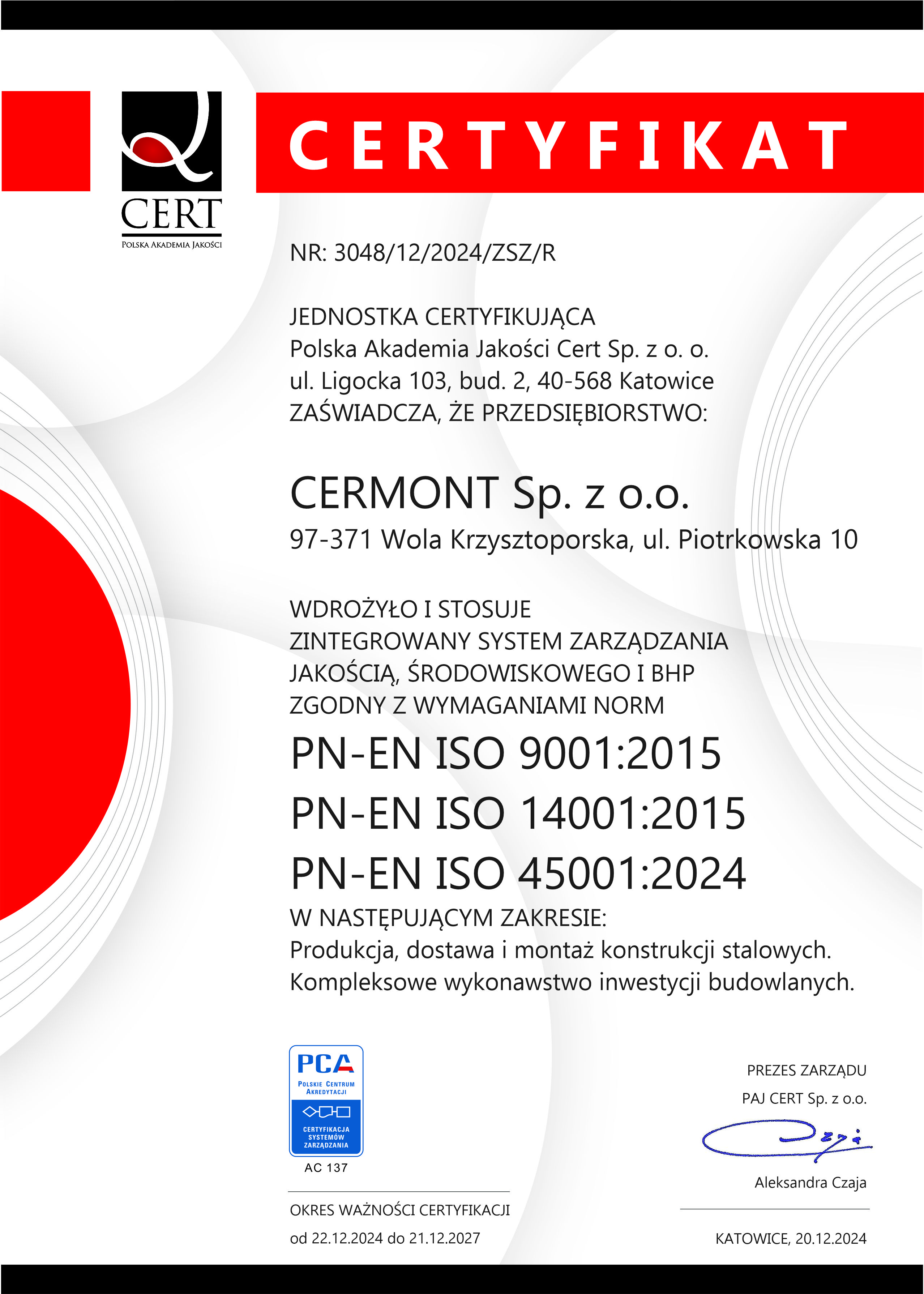 Wdrożony system ERP pozwalający m.in. na dokładne monitorowanie, raportowanie procesów produkcyjnych oraz zaawansowania projektów w czasie rzeczywistym, pozwalający na efektywną optymalizację procesów produkcyjnych, jak i elastyczność w działaniu wytwórni.